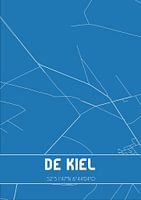 Blauwdruk van de landkaart / plattegrond van de Nederlandse plaats De Kiel, gelegen in gemeente Coevorden, provincie Drenthe. De kaart bevat alle openbare wegen en de coördinaten van het centrum van De Kiel.