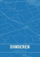 Blauwdruk van de landkaart / plattegrond van de Nederlandse plaats Donderen, gelegen in gemeente Tynaarlo, provincie Drenthe. De kaart bevat alle openbare wegen en de coördinaten van het centrum van Donderen.