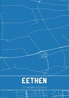Blauwdruk van de landkaart / plattegrond van de Nederlandse plaats Eethen, gelegen in gemeente Altena, provincie Noord-Brabant. De kaart bevat alle openbare wegen en de coördinaten van het centrum van Eethen.