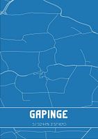 Blauwdruk van de landkaart / plattegrond van de Nederlandse plaats Gapinge, gelegen in gemeente Veere, provincie Zeeland. De kaart bevat alle openbare wegen en de coördinaten van het centrum van Gapinge.