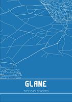 Blauwdruk van de landkaart / plattegrond van de Nederlandse plaats Glane, gelegen in Twente, in gemeente Losser, provincie Overijssel. De kaart bevat alle openbare wegen en de coördinaten van het centrum van Glane.
