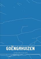 Blauwdruk van de landkaart / plattegrond van de Nederlandse plaats Goëngahuizen, gelegen in gemeente Smallingerland, provincie Fryslan. De kaart bevat alle openbare wegen en de coördinaten van het centrum van Goëngahuizen.