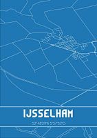 Blauwdruk van de landkaart / plattegrond van de Nederlandse plaats IJsselham, gelegen in gemeente Steenwijkerland, provincie Overijssel. De kaart bevat alle openbare wegen en de coördinaten van het centrum van IJsselham.