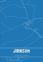 Blauwdruk van de landkaart / plattegrond van de Nederlandse plaats Jirnsum, gelegen in gemeente Leeuwarden, provincie Fryslan. De kaart bevat alle openbare wegen en de coördinaten van het centrum van Jirnsum.