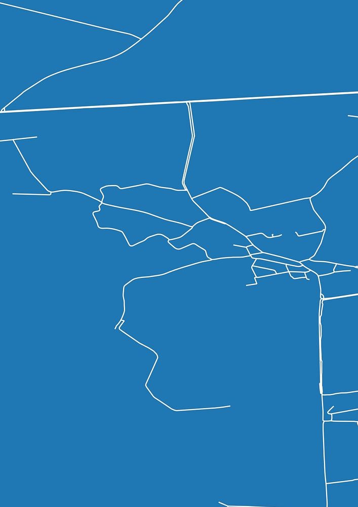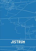 Blauwdruk van de landkaart / plattegrond van de Nederlandse plaats Jistrum, gelegen in gemeente Tytsjerksteradiel, provincie Fryslan. De kaart bevat alle openbare wegen en de coördinaten van het centrum van Jistrum.