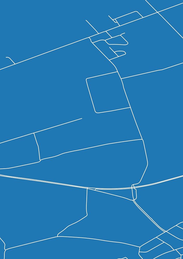 Blauwdruk van de landkaart / plattegrond van de Nederlandse plaats Marijenkampen, gelegen in gemeente Steenwijkerland, provincie Overijssel. De kaart bevat alle openbare wegen en de coördinaten van het centrum van Marijenkampen.