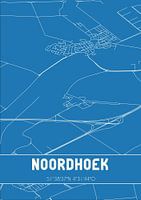 Blauwdruk van de landkaart / plattegrond van de Nederlandse plaats Noordhoek, gelegen in gemeente Moerdijk, provincie Noord-Brabant. De kaart bevat alle openbare wegen en de coördinaten van het centrum van Noordhoek.
