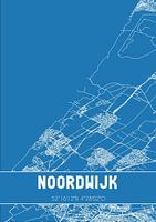 Blauwdruk van de landkaart / plattegrond van de Nederlandse plaats Noordwijk, gelegen in gemeente Noordwijk, provincie Zuid-Holland. De kaart bevat alle openbare wegen en de coördinaten van het centrum van Noordwijk.