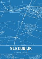 Blauwdruk van de landkaart / plattegrond van de Nederlandse plaats Sleeuwijk, gelegen in gemeente Altena, provincie Noord-Brabant. De kaart bevat alle openbare wegen en de coördinaten van het centrum van Sleeuwijk.