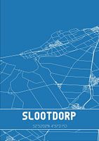 Blauwdruk van de landkaart / plattegrond van de Nederlandse plaats Slootdorp, gelegen in gemeente Hollands Kroon, provincie Noord-Holland. De kaart bevat alle openbare wegen en de coördinaten van het centrum van Slootdorp.