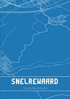 Blauwdruk van de landkaart / plattegrond van de Nederlandse plaats Snelrewaard, gelegen in gemeente Oudewater, provincie Utrecht. De kaart bevat alle openbare wegen en de coördinaten van het centrum van Snelrewaard.