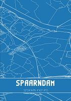 Blauwdruk van de landkaart / plattegrond van de Nederlandse plaats Spaarndam, gelegen in gemeente Haarlemmermeer, provincie Noord-Holland. De kaart bevat alle openbare wegen en de coördinaten van het centrum van Spaarndam.