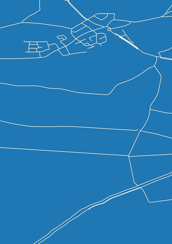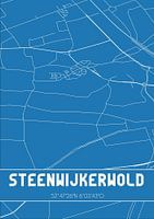 Blauwdruk van de landkaart / plattegrond van de Nederlandse plaats Steenwijkerwold, gelegen in gemeente Steenwijkerland, provincie Overijssel. De kaart bevat alle openbare wegen en de coördinaten van het centrum van Steenwijkerwold.