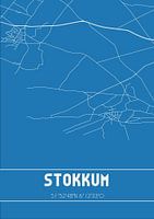 Blauwdruk van de landkaart / plattegrond van de Nederlandse plaats Stokkum, gelegen in de Liemers, in gemeente Montferland, provincie Gelderland. De kaart bevat alle openbare wegen en de coördinaten van het centrum van Stokkum.