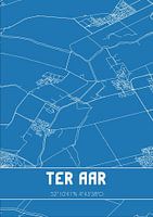 Blauwdruk van de landkaart / plattegrond van de Nederlandse plaats Ter Aar, gelegen in gemeente Nieuwkoop, provincie Zuid-Holland. De kaart bevat alle openbare wegen en de coördinaten van het centrum van Ter Aar.