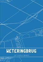 Blauwdruk van de landkaart / plattegrond van de Nederlandse plaats Weteringbrug, gelegen in gemeente Haarlemmermeer, provincie Noord-Holland. De kaart bevat alle openbare wegen en de coördinaten van het centrum van Weteringbrug.