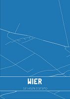 Blauwdruk van de landkaart / plattegrond van de Nederlandse plaats Wier, gelegen in gemeente Waadhoeke, provincie Fryslan. De kaart bevat alle openbare wegen en de coördinaten van het centrum van Wier.