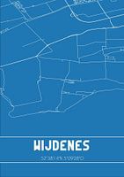 Blauwdruk van de landkaart / plattegrond van de Nederlandse plaats Wijdenes, gelegen in gemeente Drechterland, provincie Noord-Holland. De kaart bevat alle openbare wegen en de coördinaten van het centrum van Wijdenes.