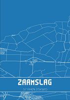 Blauwdruk van de landkaart / plattegrond van de Nederlandse plaats Zaamslag, gelegen in gemeente Terneuzen, provincie Zeeland. De kaart bevat alle openbare wegen en de coördinaten van het centrum van Zaamslag.