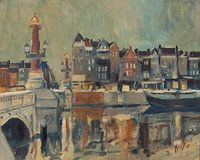 Amsterdam langs de Amstel met de Blauwe Brug aan de linkerzijde.
