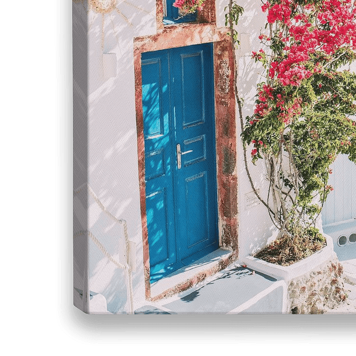 Koop de foto Blauwe Deur in Santorini van Patrycja Polechonska op canvas, aluminium dibond, (ingelijste) fotoprint, behang en ArtFrame, op maat geprint in Fine-Art kwaliteit.
