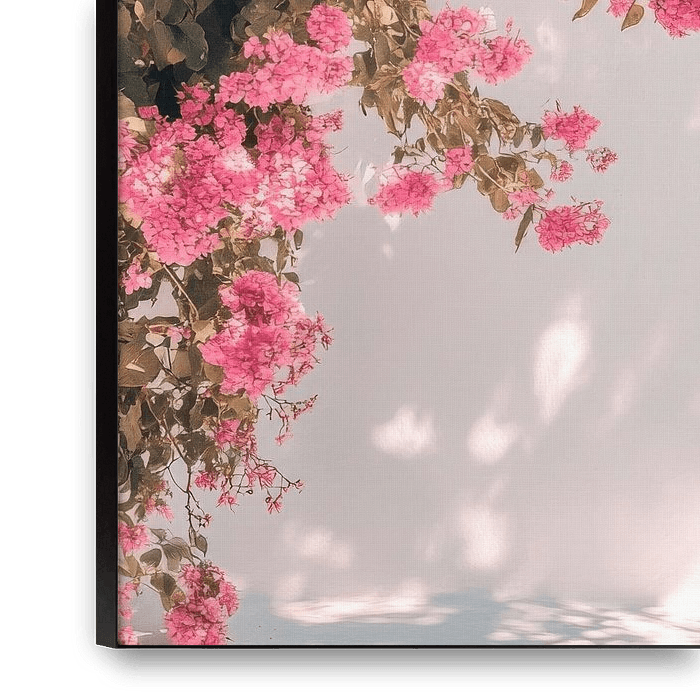 Een zacht vleugje lente. De schattige, hemelsblauwe deur is nieuwsgierig uitnodigend, terwijl de levendige bougainville met haar roze bloemen zich er kunstig boven verstrengelt. Het spel van licht en schaduw geeft de scène een dromerige sfeer, bijna alsof er een mysterieuze plek wacht om ontdekt te worden achter deze uitnodigende deur.