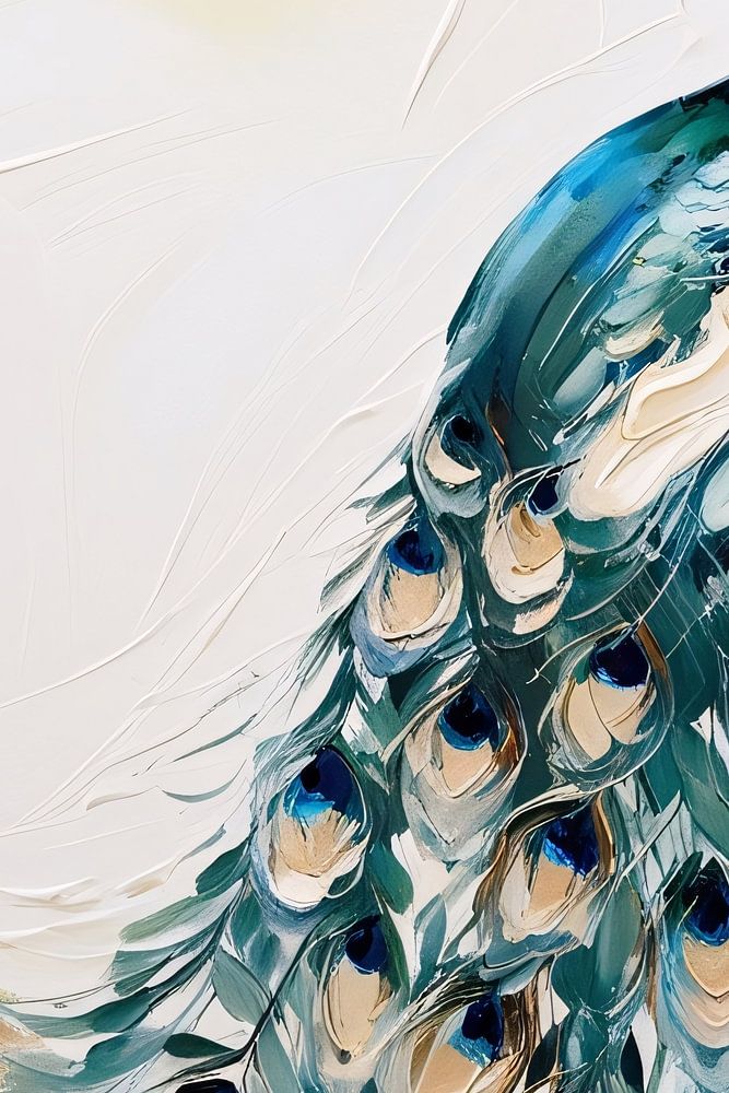 Dit prachtige ontwerp van een pauw combineert abstractie en elegantie op een verfijnde manier. De kleuren blauw, groen en goud vloeien harmonieus samen in de sierlijke veren, die bijna uit het doek lijken te komen. Met vloeiende penseelstreken is de pauw in een dynamische pose weergegeven, wat zorgt voor een speels en toch verfijnd effect. De abstracte achtergrond biedt een subtiel contrast met de gedetailleerde verenkroon van de pauw. Dit kunstwerk is perfect voor liefhebbers van moderne kunst en zal ongetwijfeld een blikvanger zijn in elke kamer. Het ontwerp straalt luxe en verfijning uit, ideaal voor zowel moderne als klassieke interieurs.