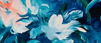 Een fascinerend samenspel van levendige blauwe tinten en zachte, bloeiende vormen voert de kijker mee naar een droomachtige tuin. De zachte beweging van de penseelstreken creëert een sfeer vol rust en elegantie. Ideaal voor de slaapkamer, waar deze werelden van kleur harmonie en ontspanning bevorderen.