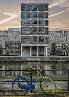 Kleurrijke fiets in een grauwe stad. Een duidelijke tegenstelling gevangen in een foto.