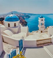 Blauwe kerkkoepel, Firostefani, Santorini, Griekenland