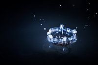 Prachtige high speed opname van een druppel melk die in water valt met een blauwe achtergrond