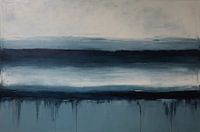 Ontdek de serene schoonheid van abstractie met dit intrigerende kunstwerk dat de essentie van minimalistische elegantie vangt. Met een subtiel kleurenpalet dat overgaat van diepe, doordringende blauwtinten tot zachte grijzen, brengt dit stuk een gevoel van rust en reflectie in elke ruimte. De horizontale lijnen suggereren een landschap…