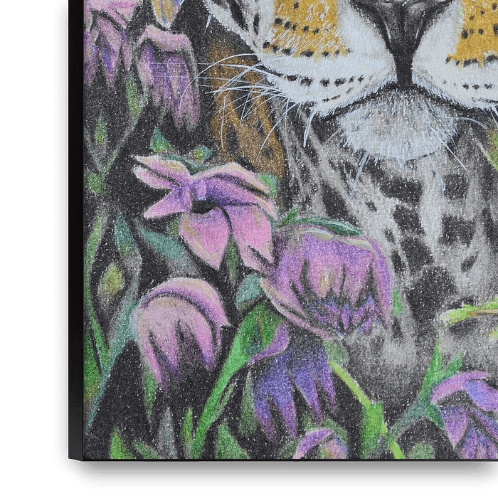 En soms kom je in de jungle een jaguar tegen die in het struikgewas ligt te loeren. De inspiratie kwam van de toen net verschenen kleurpotloden, die om een kleurrijke tekening vroegen. Aangezien de originele tekening slechts A4-formaat heeft, kan het zijn dat bij grotere afdrukken de lijnen te duidelijk naar voren komen. Kleinere…