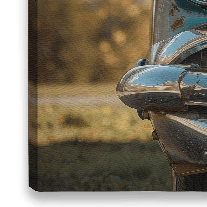 Blauwe oldtimer close-up schilderij met een prachtige en unieke stijl. Met prachtige kleurtinten en een uniek ontwerp maakt dit tot een stijlvolle fotoprint die prachtig staat in elke ruimte. 100% uniek en origineel!