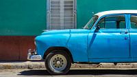Blauwe oldtimer - de iconische auto -in het straatbeeld van Havana, de hoofdstad van Cuba.