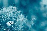Paardebloem met opstijgende parasol, in blauwe tinten en met een fijne textuur.