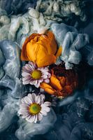Een boeket ranonkels onder water met acrylverf.