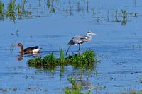 Koop de foto Blauwe reiger en grauwe gans van Karin Jähne als print op canvas, aluminium dibond, (ingelijste) fotoprint, behang en ArtFrame. Voor jou op maat geprint in Fine-Art kwaliteit.