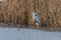 Het is lastig vissen voor de blauwe reiger wanneer er ijs ligt. Hij kan beter een andere locatie zoeken waar geen ijs ligt.