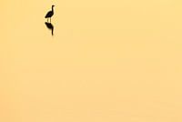 Blauwe Reiger silhouet in Waddenzee met ondergaande zon