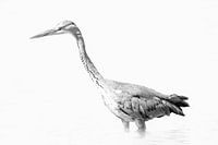 Blauwe reiger zwart-wit / high-key uitvoering.
