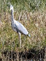 De achtergrond is minimalistisch gehouden, met slechts een suggestie van water en nevel, zodat de vormen van vogel en riet des te sterker spreken. De reiger is niet natuurgetrouw uitgewerkt, maar in sierlijke vlakken en ritmische lijnen neergezet, wat het beeld een bijna grafische kwaliteit geeft. De beweging van het riet en de lichte buiging van de reiger suggereren een subtiele dynamiek binnen een verder verstilde scène.