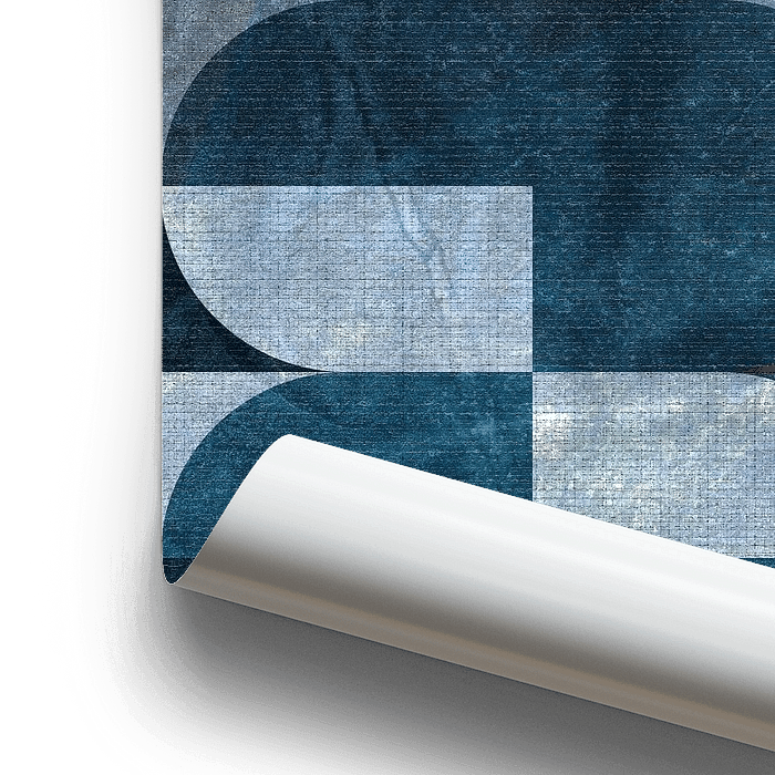 Dit abstracte digitale kunstwerk heeft een schone en evenwichtige opstelling van ovalen, rechthoeken en vierkante vormen in een gedempt, aards palet. Diepe roest, terracotta, stemmig blauw en zachte bruine tinten creëren een kalme en geaarde compositie die spreekt tot eenvoud en visuele harmonie.