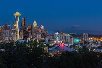 De Space Needle is duidelijk zichtbaar net als Mount Rainier.