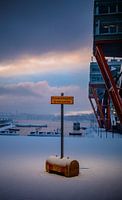 Over ‘Blauwe‑uur winterhaven | minimalistische Nordic stadsfotografie’ van Broodrooster Studio – Creatieve Fotografie