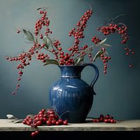Blauwe vaas met bessen van TheXclusive Art