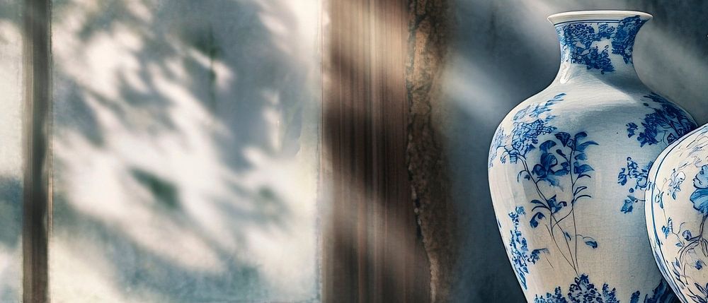 Zacht licht valt door een raam en speelt met de elegante vormen van de sierlijk versierde vazen. Hun prachtige blauw-witte patroon straalt gratie uit en trekt ieders aandacht. Dit sfeervolle arrangement is perfect voor in de woonkamer, waar het dient als tijdloze blikvanger en gespreksonderwerp.