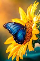 Koop dit bloemen kunstwerk Blauwe vlinder op zonnebloem van Poster Art Shop op canvas, aluminium dibond, (ingelijste) fotoprint, behang en ArtFrame, op maat geprint in Fine-Art kwaliteit.