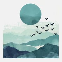 Dit kunstwerk toont een minimalistisch landschap met een blauwe zonsopgang en vliegende vogels, wat een rustgevende en vredige sfeer creëert. De harmonieuze blauwe tinten en zachte heuvels maken het ideaal voor moderne woonruimtes, slaapkamers of kantoren. Perfect voor liefhebbers van een eigentijdse en rustgevende inrichting. Dit stuk geeft elke kamer een elegante en rustige uitstraling en nodigt uit om te blijven hangen.