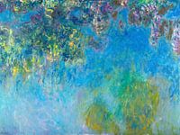 Blauweregen is een van Monets meest expressieve schilderijen. De bloemtrossen zijn teruggebracht tot een wirwar van uitbundige paarse en blauwe penseelstreken. Voor Monet was de herkenbaarheid van het onderwerp niet langer een uitgangspunt. In zijn verbeeldingen van Giverny liet hij langzaam maar zeker het onderscheid tussen lucht, water en wolken los. Hij vermeed elke vorm van dieptewerking en hanteerde een steeds lossere penseelvoering. Ook Blauweregen brengt je in verwarring. Zien we de bloemen tegen een blauwe hemel, of kijken we naar een reflectie in het water?